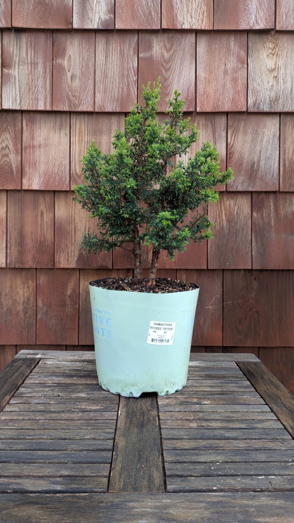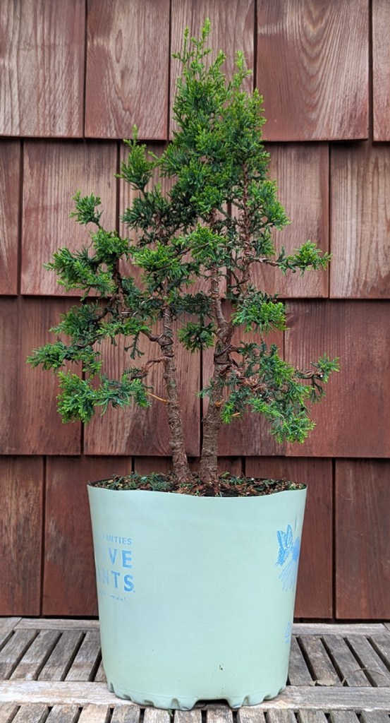 To enter, you must be a club member, then purchase a ‘nursery stock’ tree that costs $75 or under during the specified time window. A ‘nursery stock’ tree is one purchased from a nursery that has received no bonsai training. Nothing from the discount rack, dug up from the yard or forest, or anything that has been previously worked on!